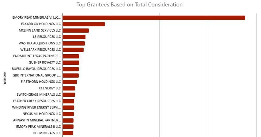 The chart below shows some of the top-spending Grantees. They represent 52% of the total consideration spent in 2025. Thank you to these companies (and those not listed) for investing in the great state of Oklahoma.
